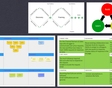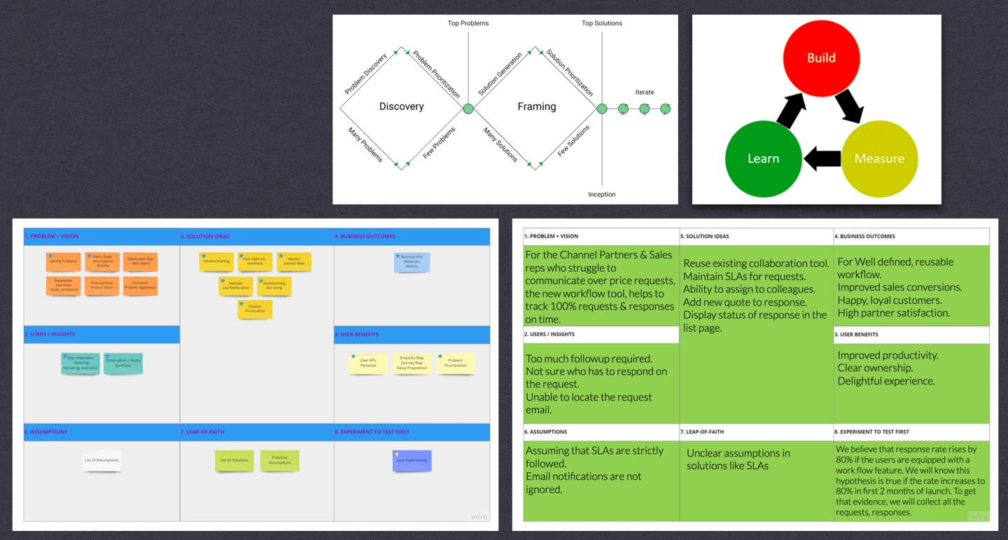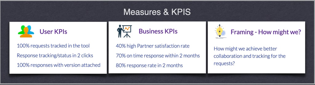 The hypothesis considered for the solution framing was "We believe that response rates will increase by 80% if Channel Partners & Sales Representatives have an automated request workflow feature."