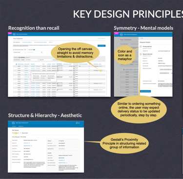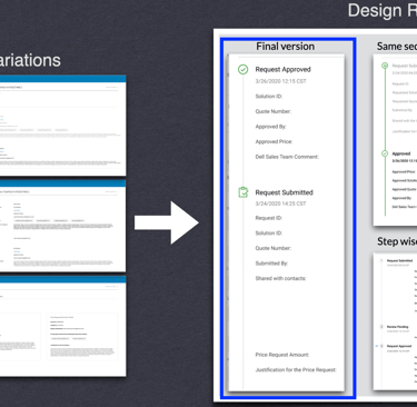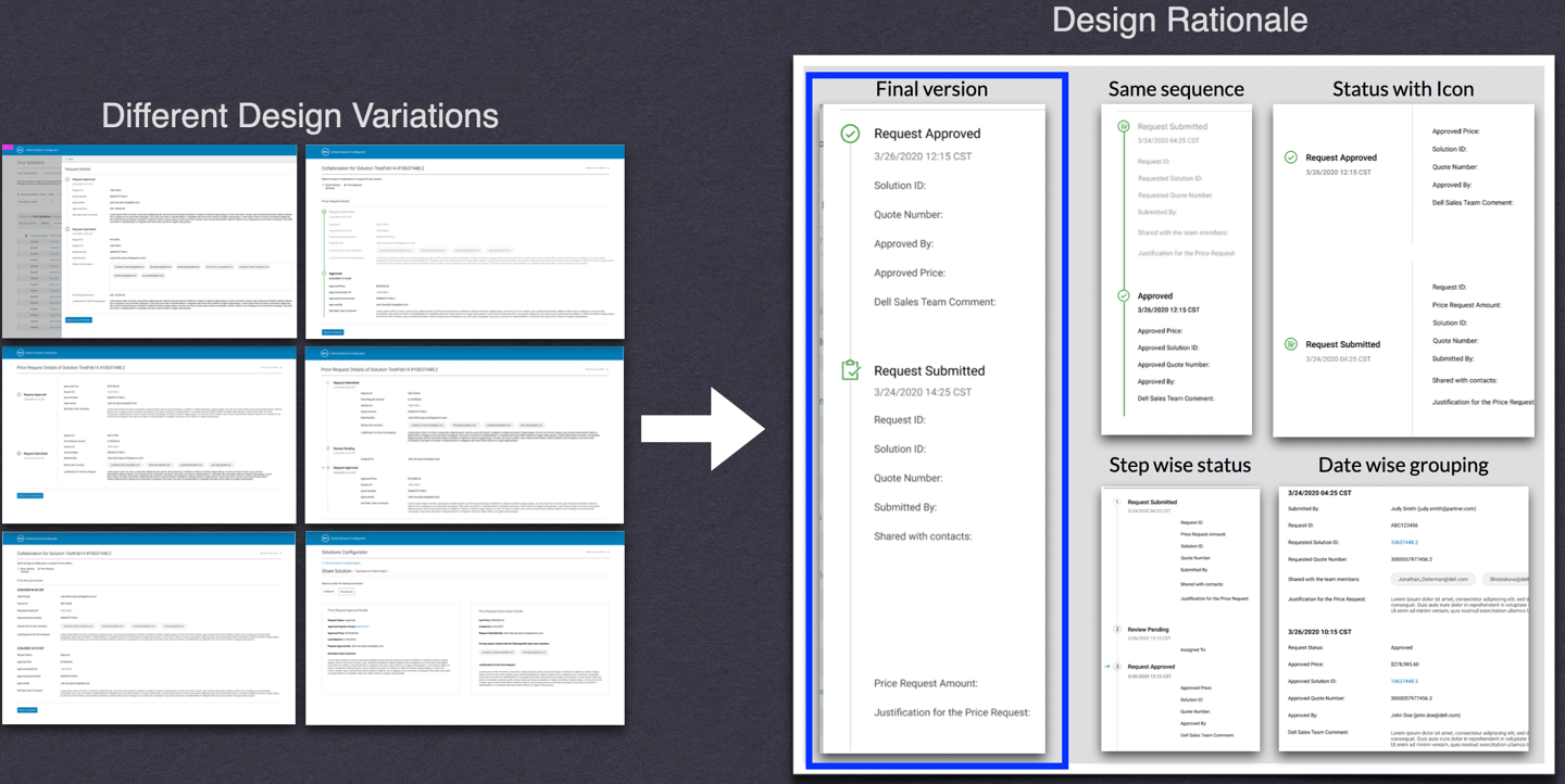 I came up with different design options for the users to check the status. The goal is to ensure that the user can quickly identify the status. I tested with users and based on the feedback, a simplified version of request and response was used.