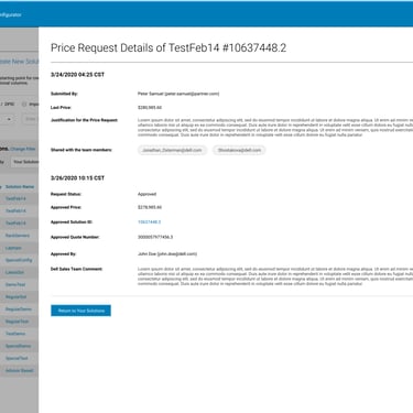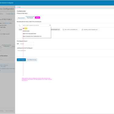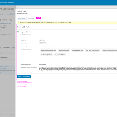 The Online Solution Configurator is a Dell Sales application designed for Channel Partners, helping them identify enterprise hardware needs, capture customer details, and track orders from initiation to delivery. Users collaborate with their customers to configure complex infrastructure, apply deals, finalize pricing, and generate customized quotes.