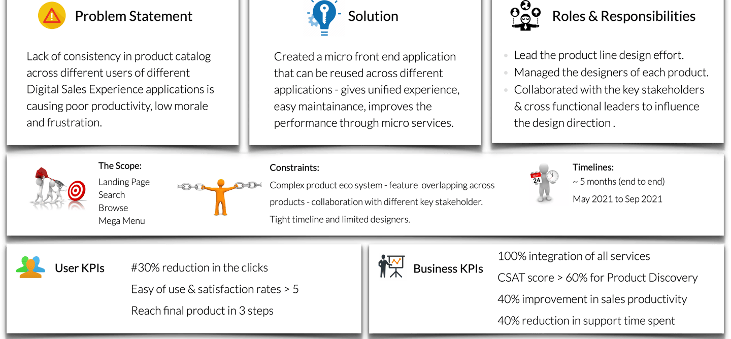 The goal was to revamp the existing product discovery features across the Dell Sales Experience domain and create a unified experience.