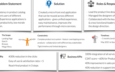As a first step after discovering the right problems to solve, created various design options and iterated by discussing with all key stakeholders involved.